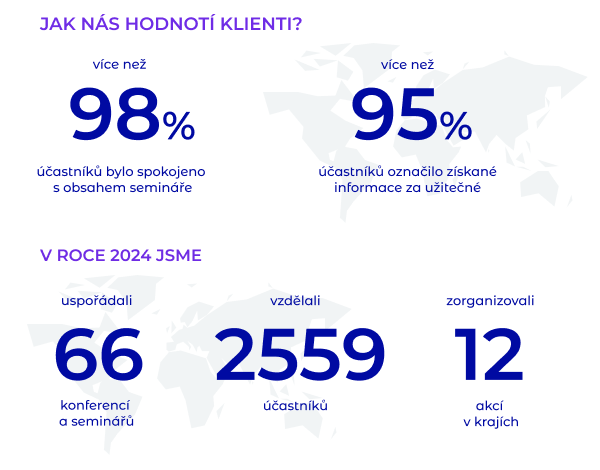 Připravujeme české firmy na úspěšné obchodování v zahraničí prostřednictvím odborných a teritoriálních seminářů, business konferencí a firemních školení na míru.